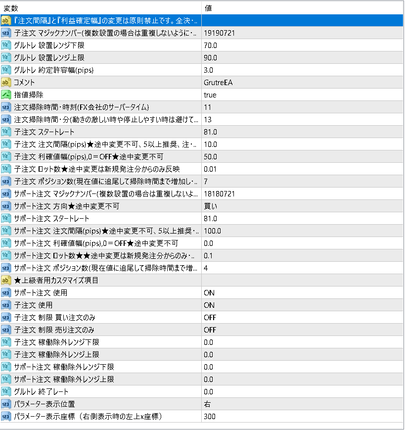 v3「グルトレ終了レート」となっていた項目がv4「自動全決済指示レート[1]〜[3]」と増えています。