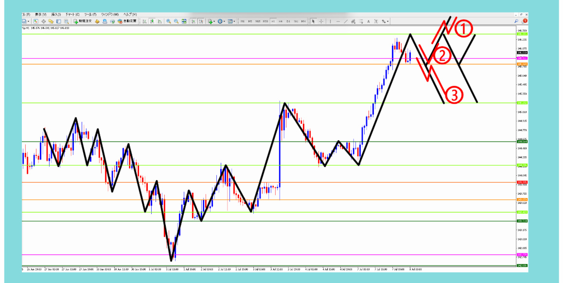2025年7月8日火曜日の②の相場予想が的中で爆益!【波動マスターFX】ドル円/答え合わせ※FXはチャンスを待つのが大事!