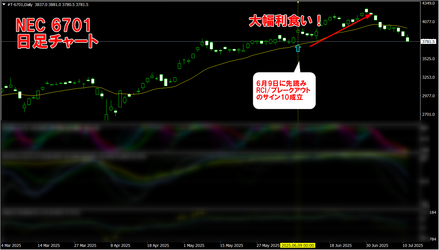 下は、NEC(6701)の日足です。