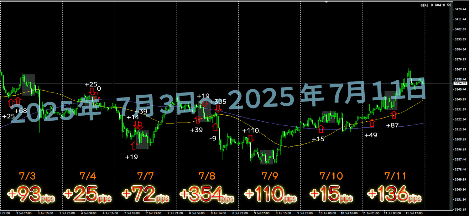 先週+687pips!7/7~7/11の部分をご覧ください。