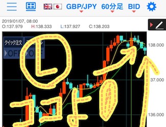→ 利食いは60pips、損切りは50pipsでOCOでセット