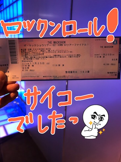 少し前ですが、マックショウのライブに行きました。キャロルみたいな王道ロックで楽しかった♪