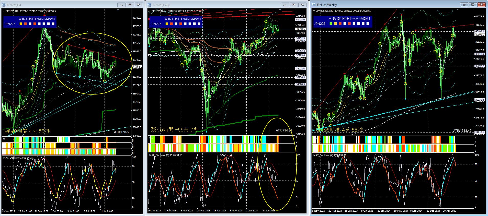 一方で、週足のMAXオシレーター、シンクロバンドは「中立」を示唆