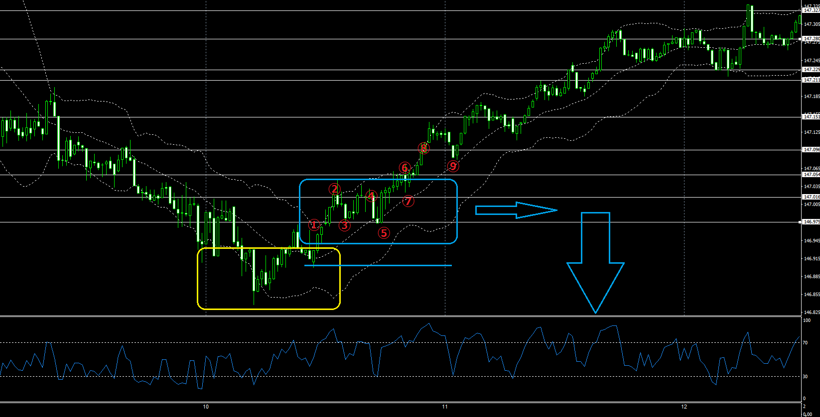 その後のポジションも基本的には同じ考え方ですが、右肩上がりにとれんどが出て⑥⑦⑧⑨となる場合は、マニュアルの出来高を追いかけながらLポジ場所を探るのです。