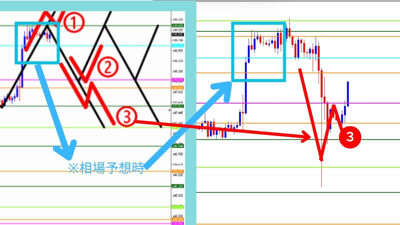 【左側:相場予想時のチャート】 【右側:答え合わせ時のチャート】