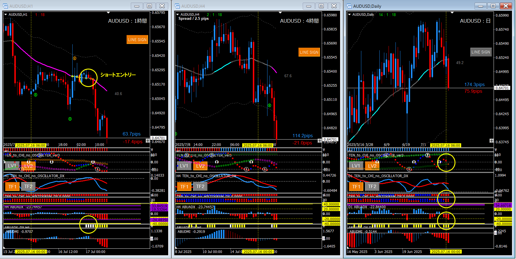 オジドル(AUDUSD)/ 1時間足+4時間足+日足 過去検証