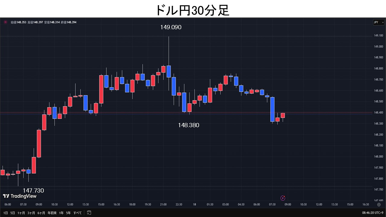 ドル円、好調な米経済指標で149.09まで上昇となるが、その後は伸び悩み。