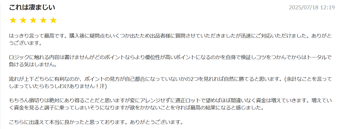 今回のロジックで、しっかりと利益を出されたとおっしゃって頂いています。