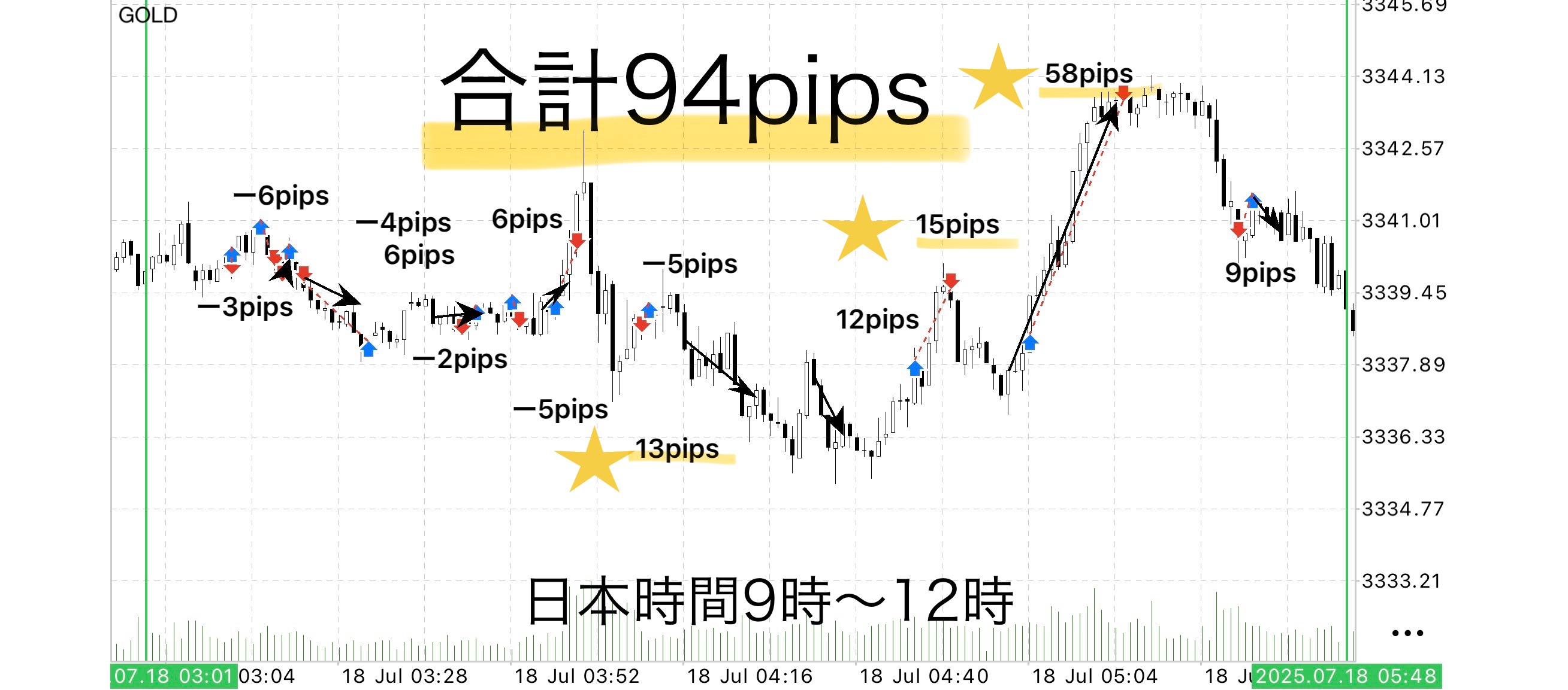 • 9時〜12時:+94pips(約+136,300円/1ロット換算)