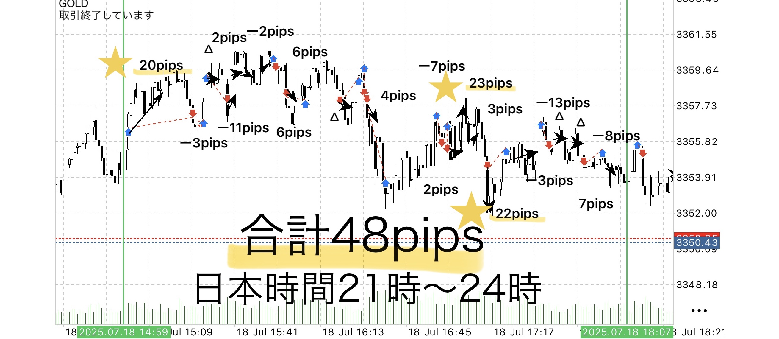 天空の狭間検証_7/18(金)自動エントリー後にトレード開始──GOLDで迷わず積み上げた219pips」【第38回】