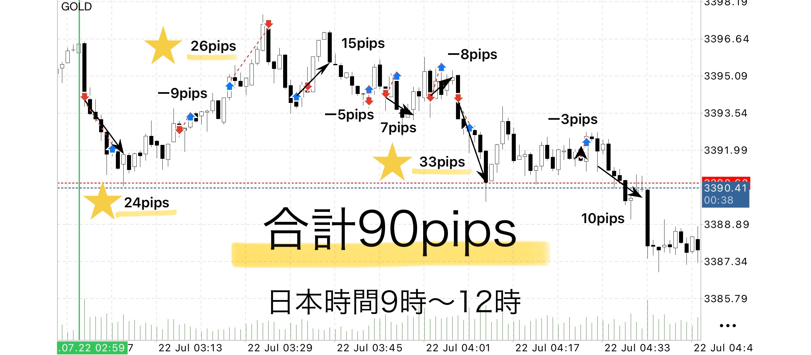 GOLD|朝9時〜12時の3時間で+90pips!