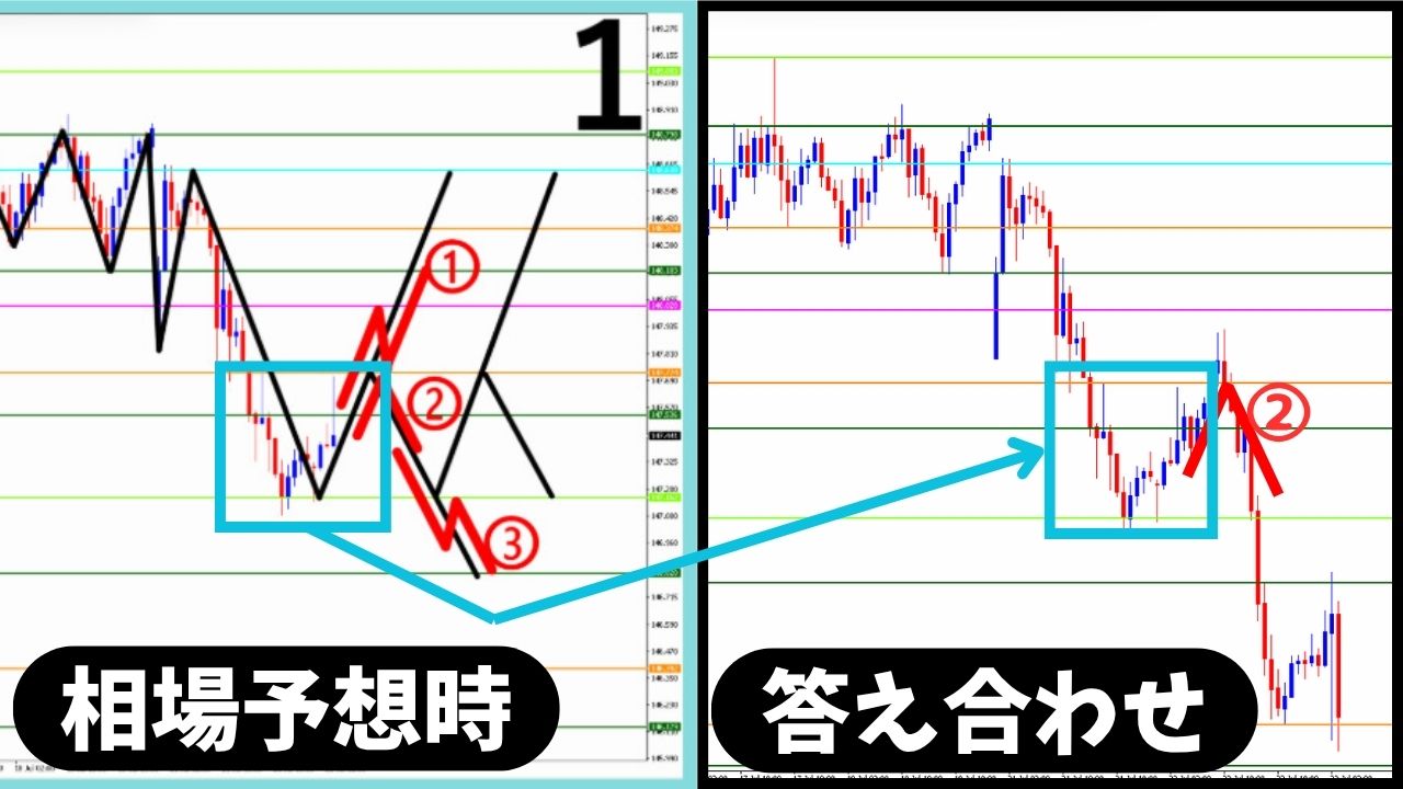 【左側:相場予想時のチャート】 【右側:答え合わせ時のチャート】