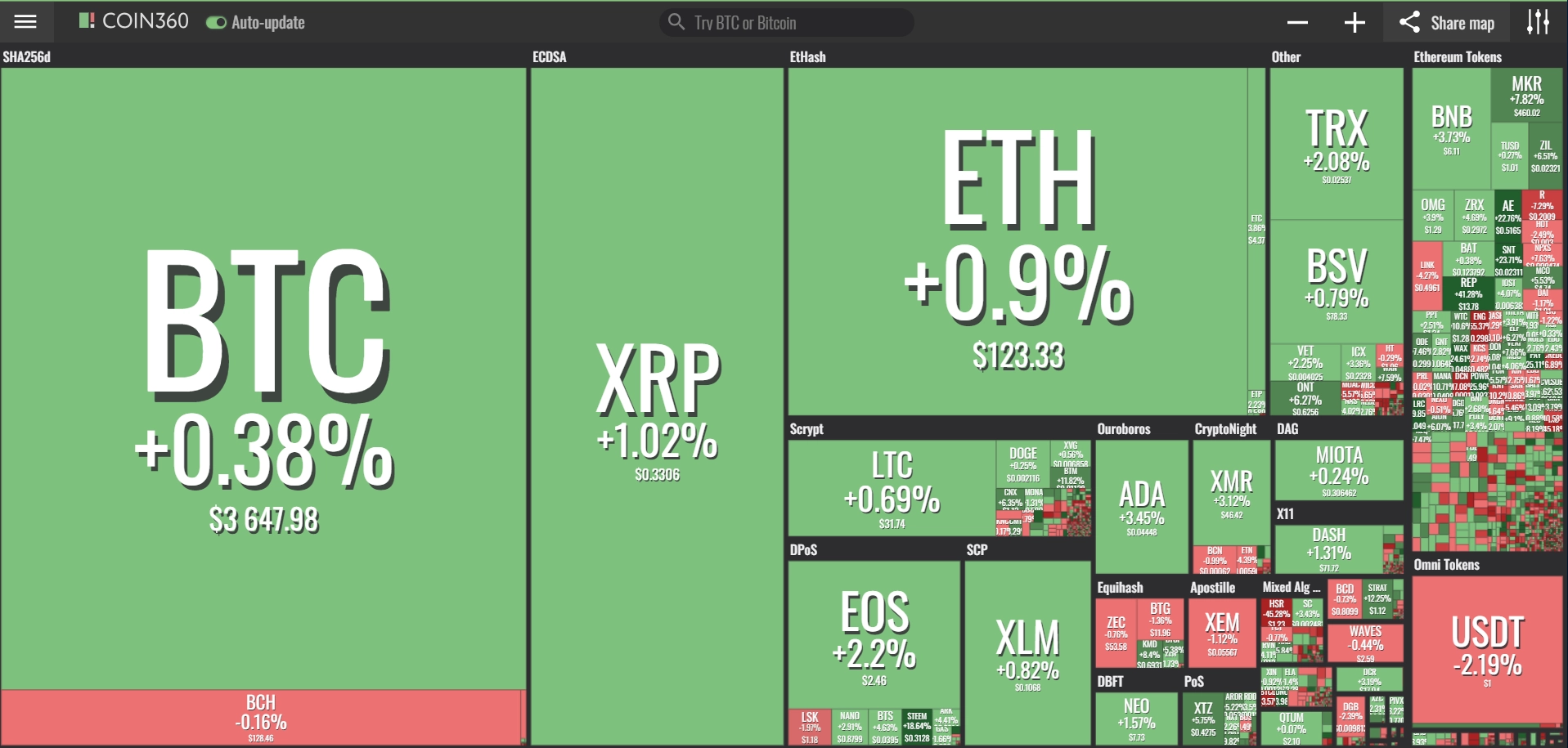 coinmarketcap(コインマーケットキャップ)のサイトから、ドミナンス(各銘柄が仮想通貨全体の時価総額に占めるパーセンテージ)を定点観測していきます。仮想通貨全般が下方向に大きく動き出している相場状況を受け、毎日更新することとし、仮想通貨業界を俯瞰および転換期を早期に発見することを目的とします。