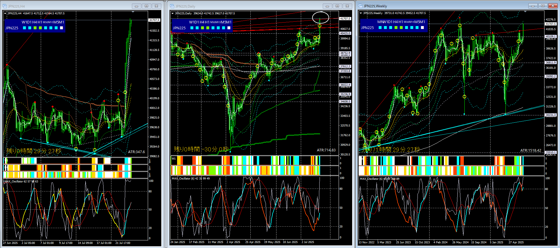 日足のMAXオシレーター・シンクロバンドは現在は「強い上昇」に変化