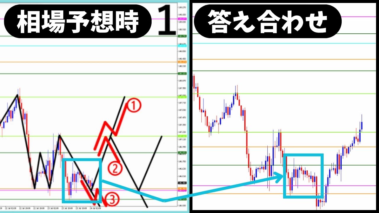 【左側:相場予想時のチャート】 【右側:答え合わせ時のチャート】
