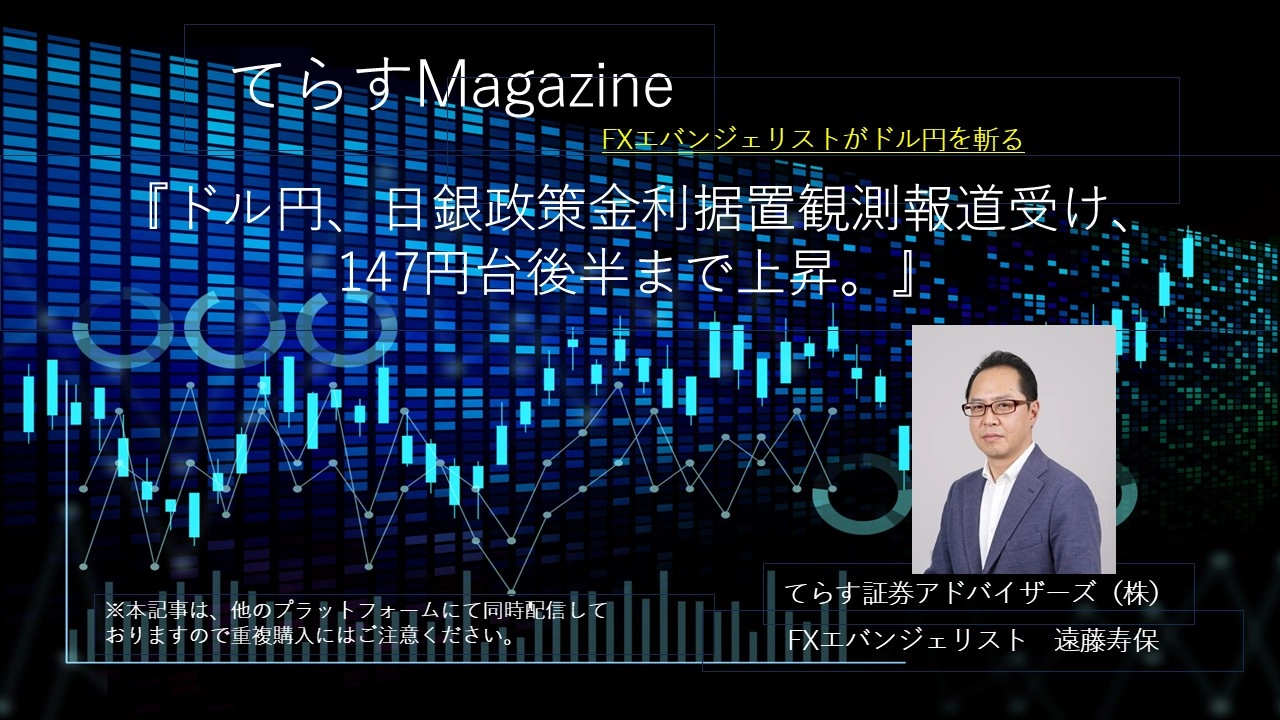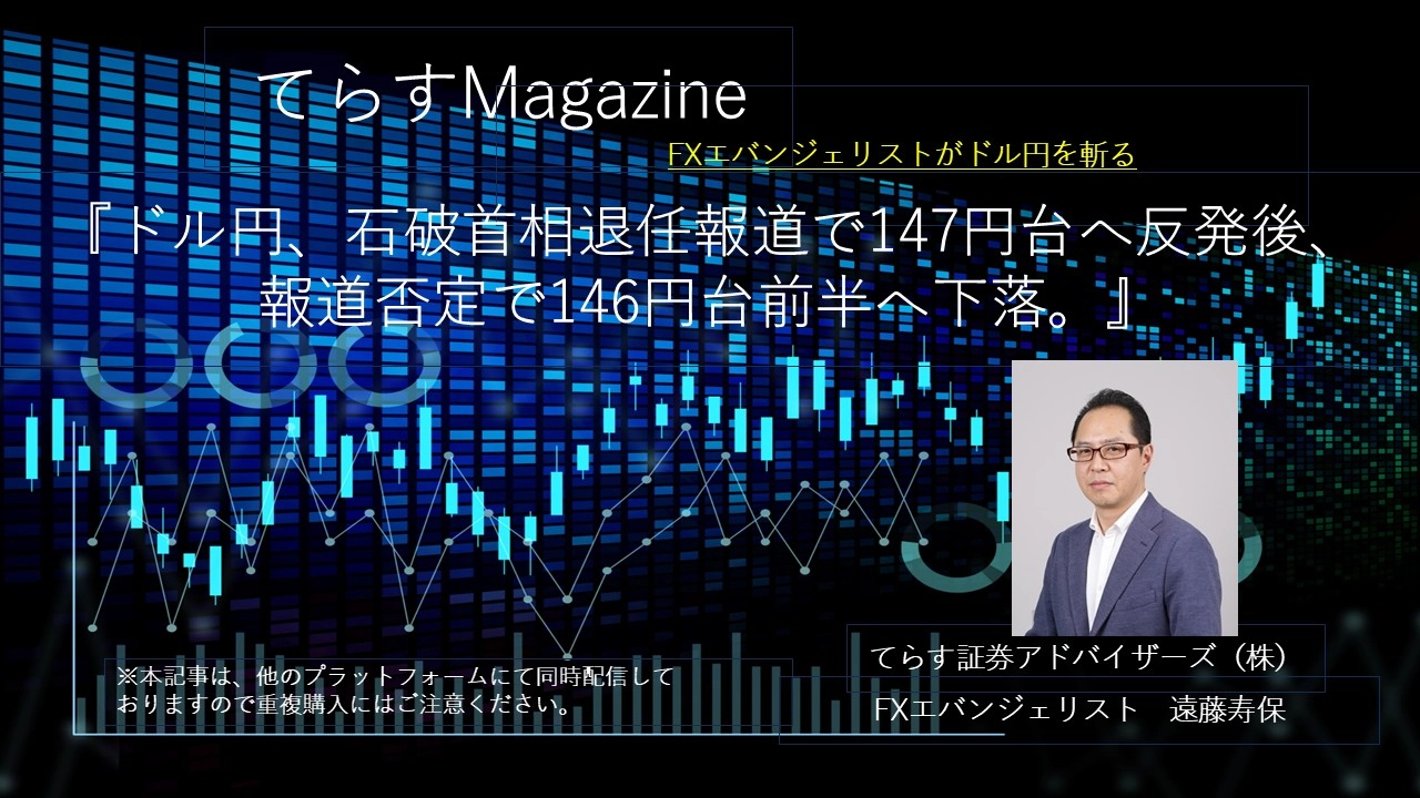 ドル円、一時145円台まで下落となるが、その後147円台まで反発。