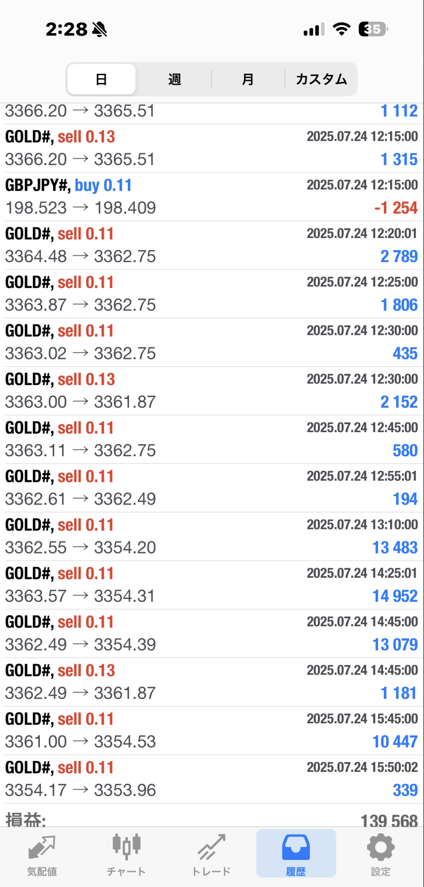 <<< 7月24日 GOLD 42勝2敗 >>>