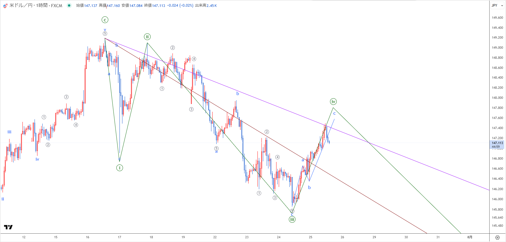 7月25日(金)のイベント&ドル円のエリオット波動分析