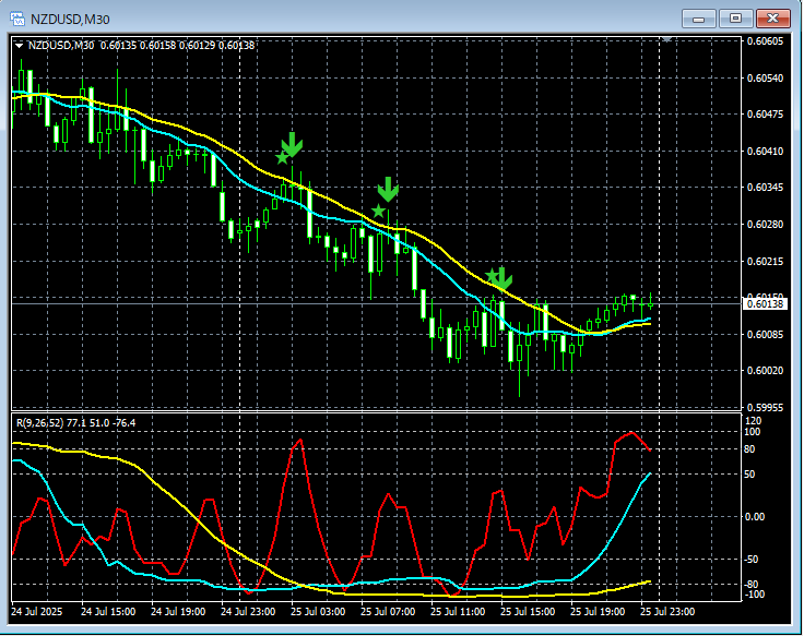 【RCIを極めて移動平均線フィルターで勝つ!! 直近の NZDUSD 30分足】mBDSRの戻り売りサイン
