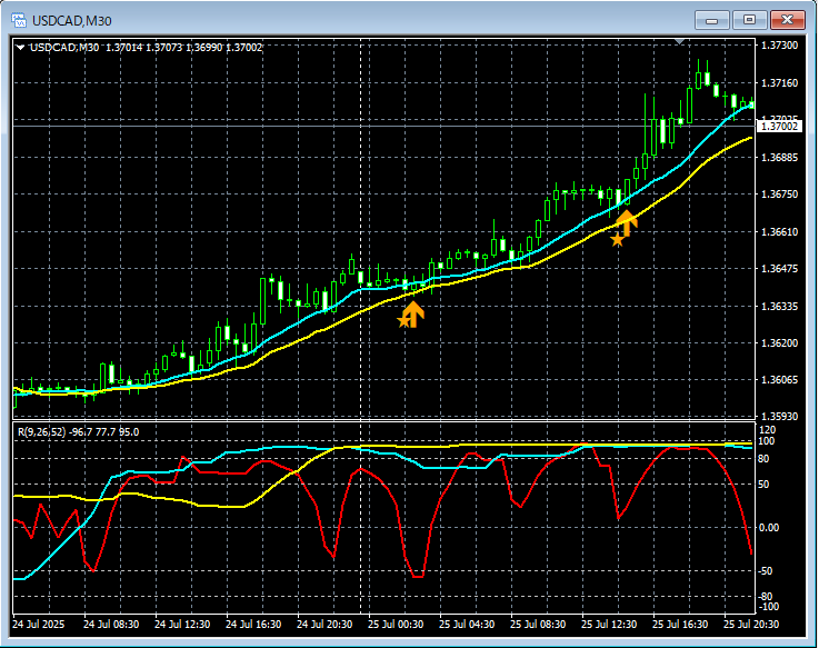 【RCIを極めて移動平均線フィルターで勝つ!! USDCAD 30分足】mBDSRの戻り売りサイン