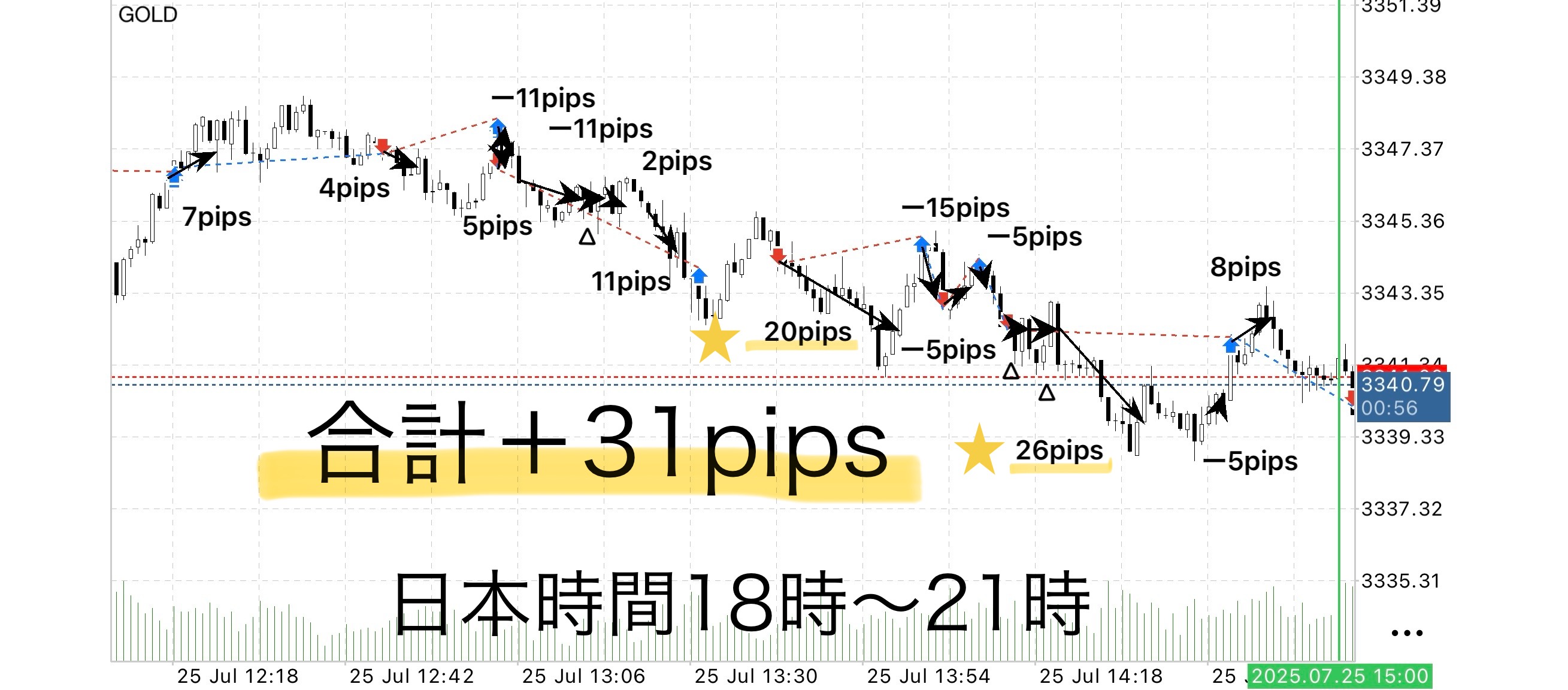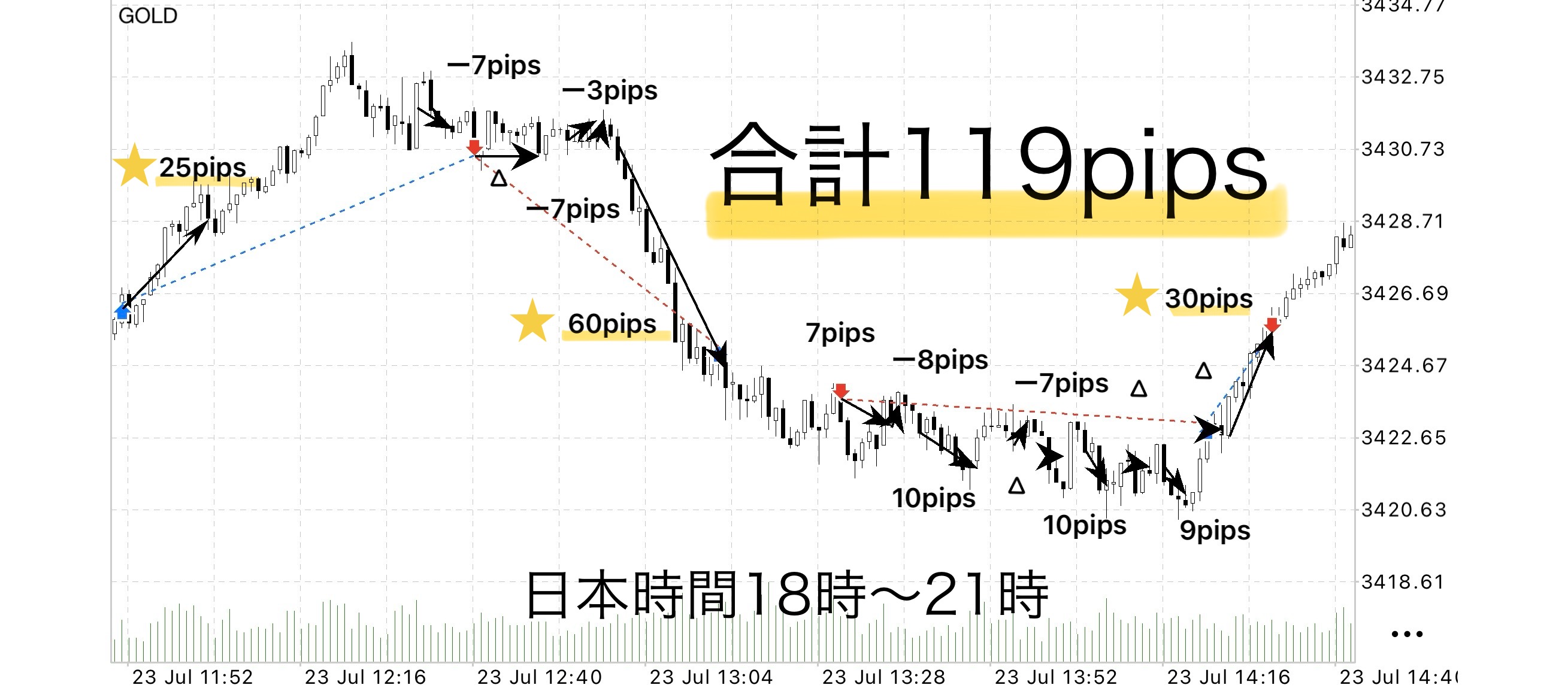 • 23日(水)は大幅プラスで+119pipsを記録。