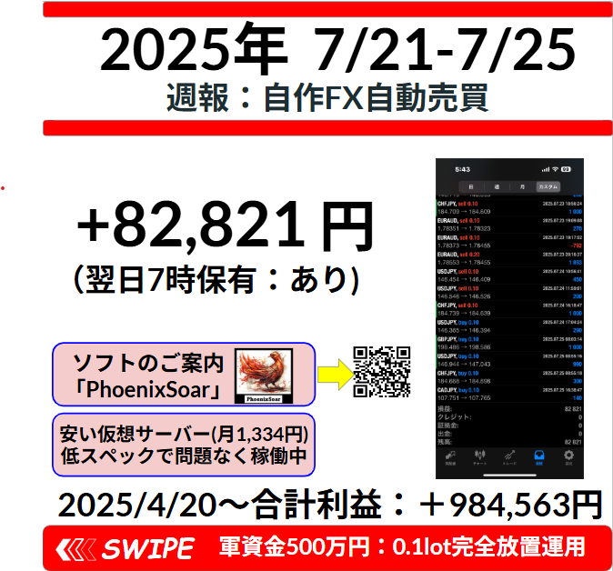 【週報:2025.7.21-2025.7.27】オリジナルEA「PhoenixSoar」の成績報告