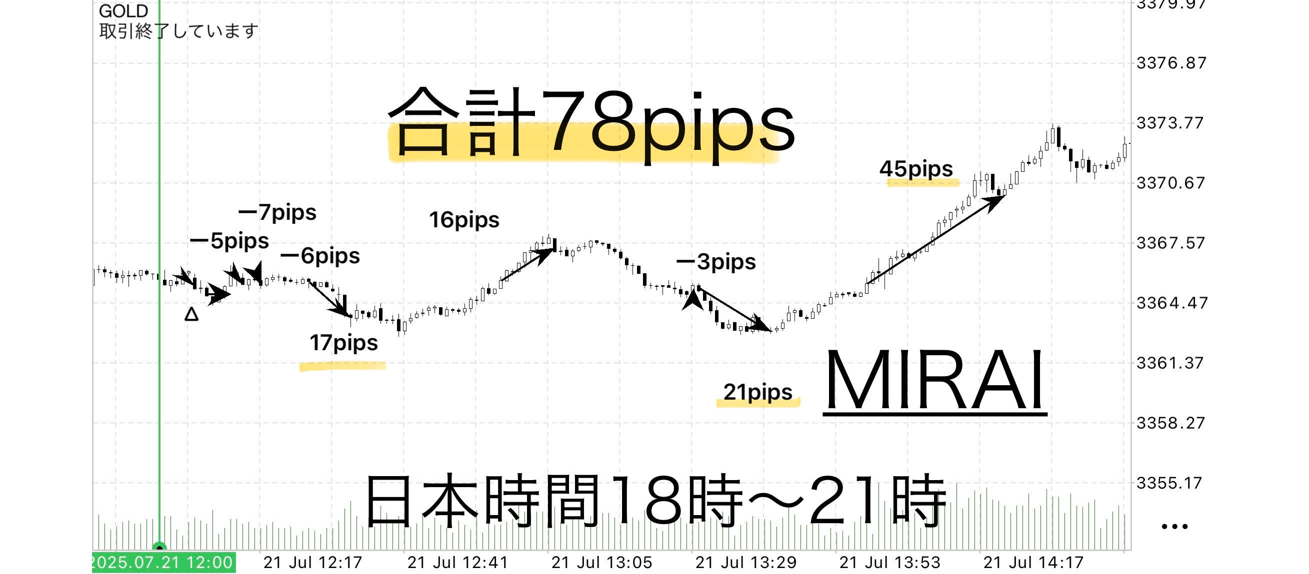 ・21日(月):天空の狭間 +42pips / MIRAI +78pips