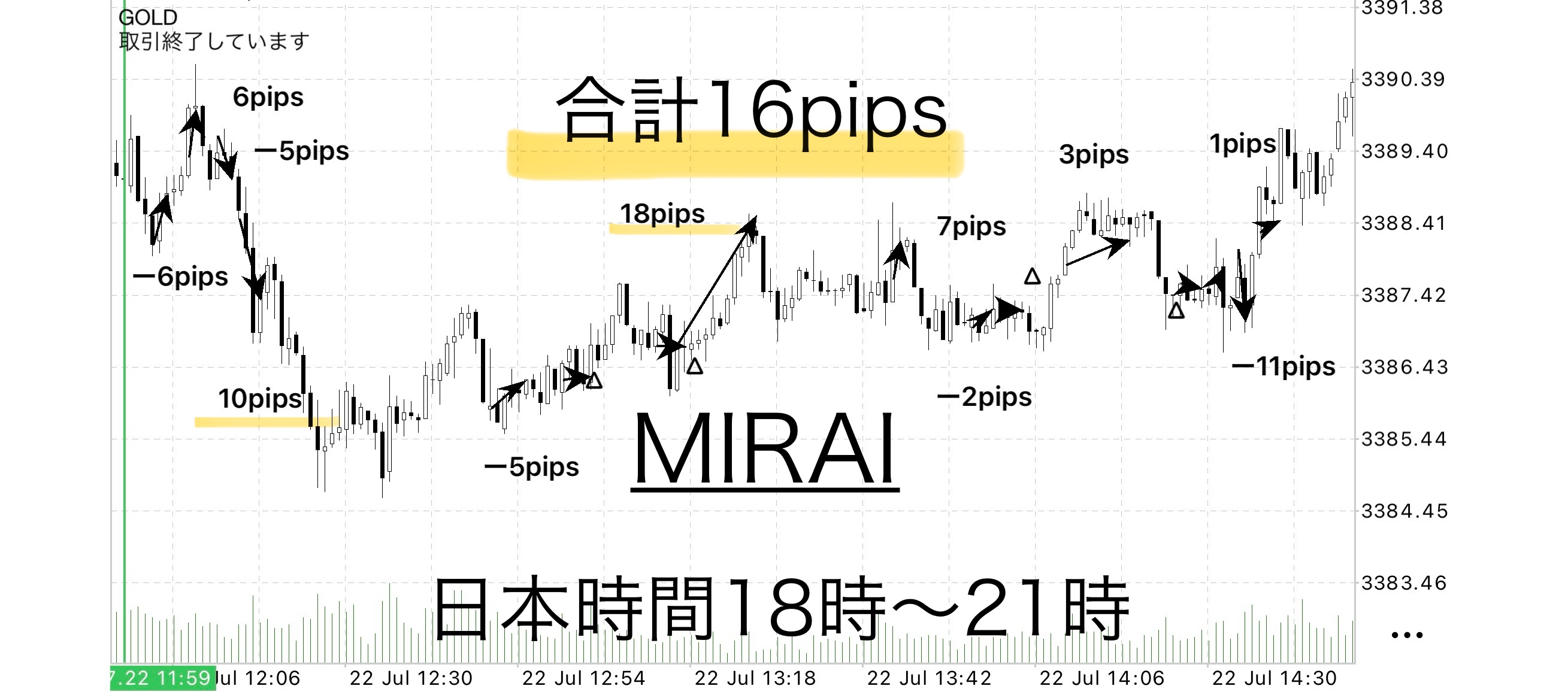 ・22日(火):天空の狭間 +17pips / MIRAI +16pips
