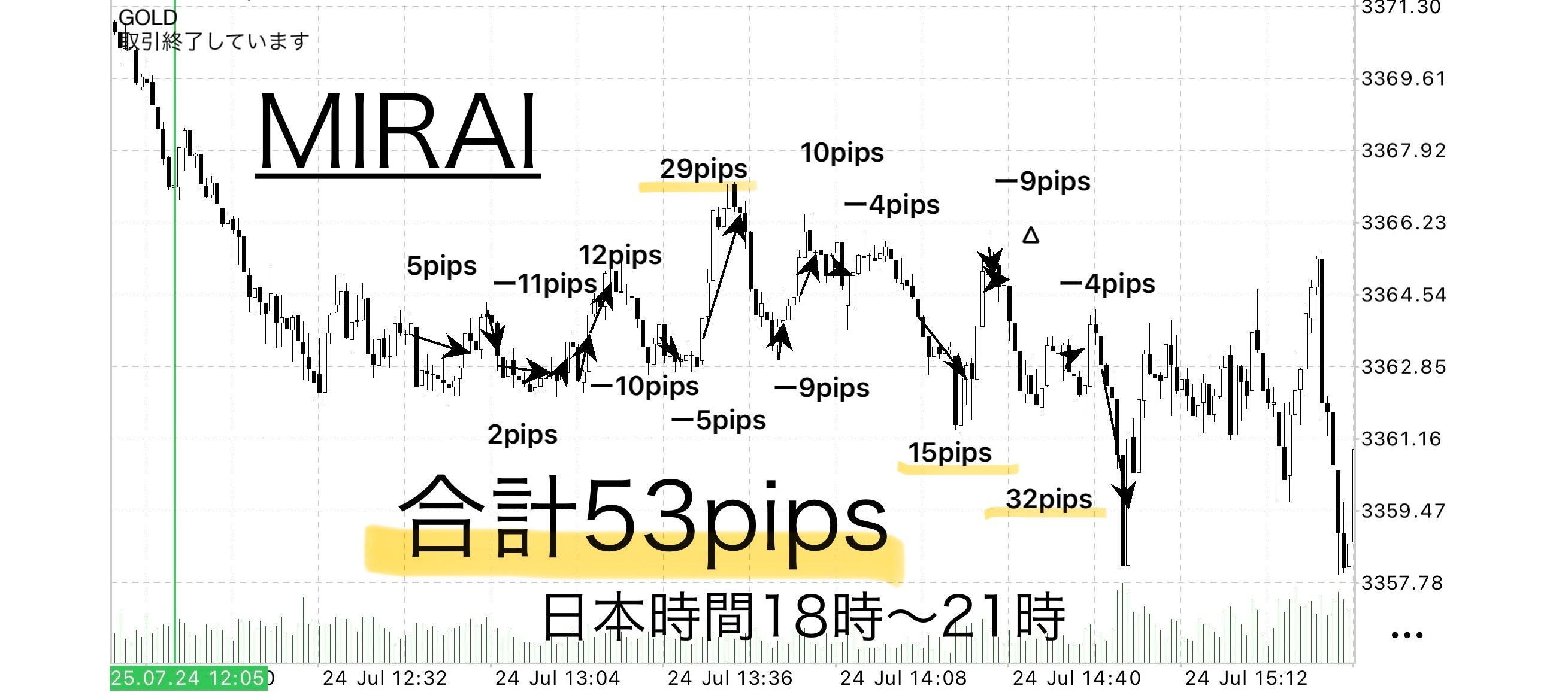 ・24日(木):天空の狭間 −2pips / MIRAI +53pips