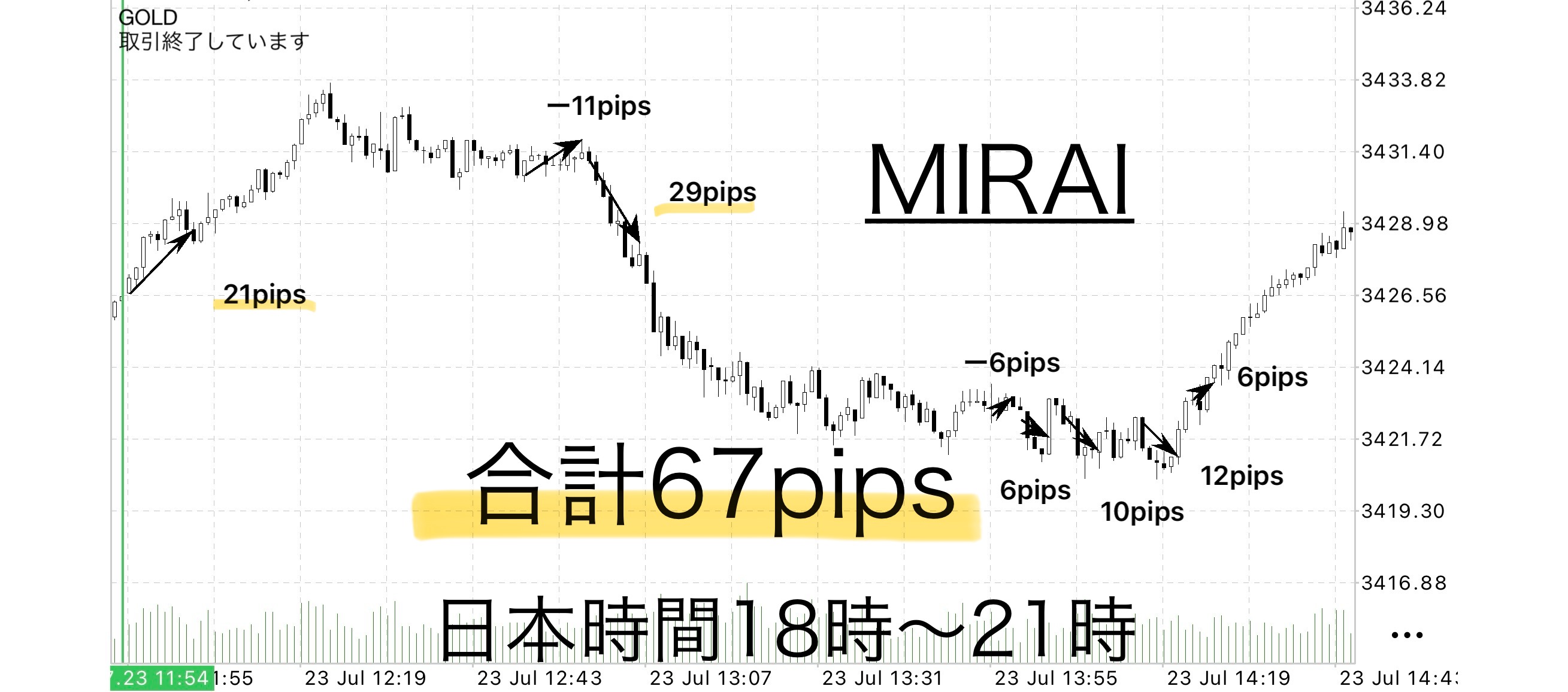 ・23日(水):天空の狭間 +119pips / MIRAI +67pips