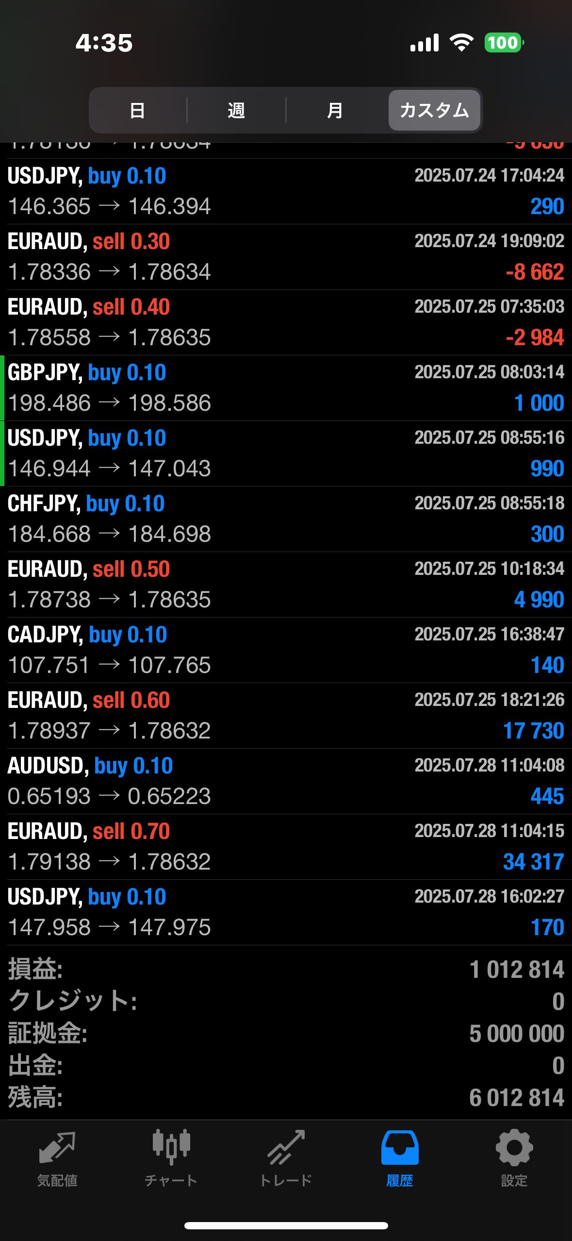 【コメント】レバレッジ0.1Lot運用で、ペースとしては3か月で利益100万円ペースです。