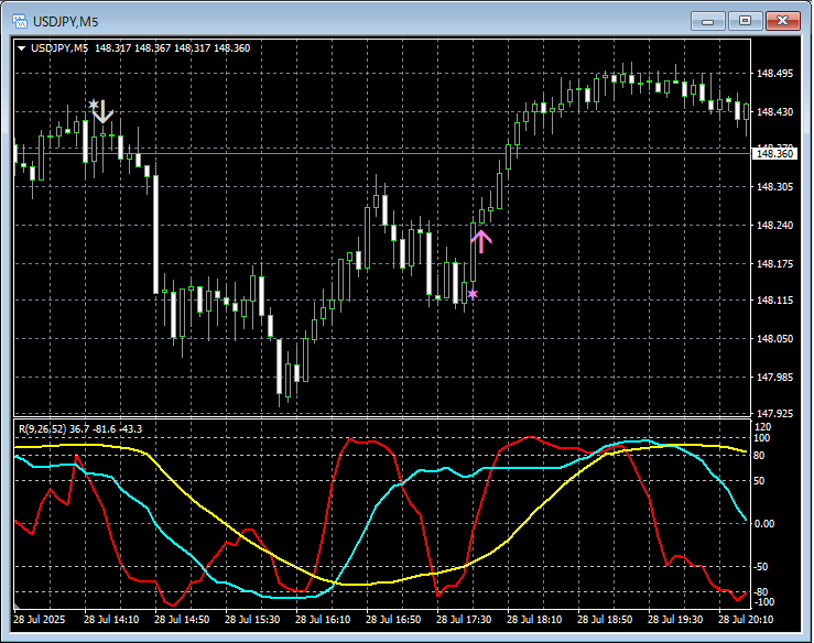 ドル円 USDJPY 5分足 2025年7月28日