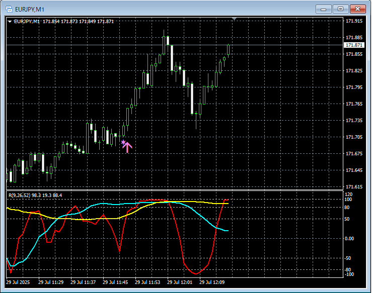 【RCIを極めて勝つ!!】1分足短期トレード(スキャルピング)を楽しもう(39) ユーロ円 2025/7/29