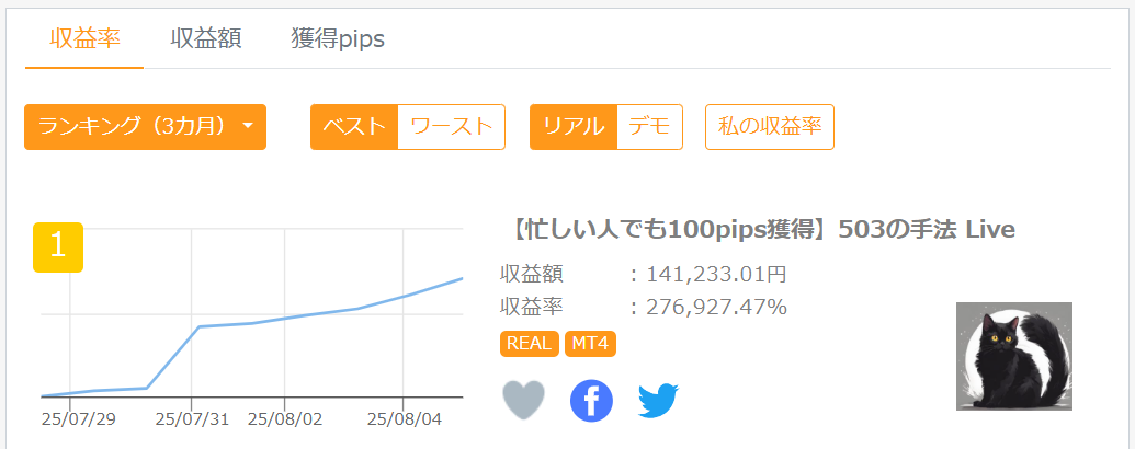 にあわせて、Real Trade の方でも【忙しい人でも100pips獲得】503の手法 Live をスタートしています。」