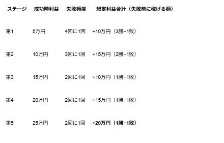 そして第5ステージでは、わずか6トレードで元本の+100%の利益を狙える設計です。