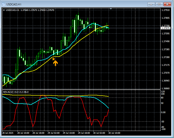 追根究底FX【RCIを極めて移動平均線フィルターで勝つ!! USDCAD 1時間足】mBDSRの押し目買いサイン