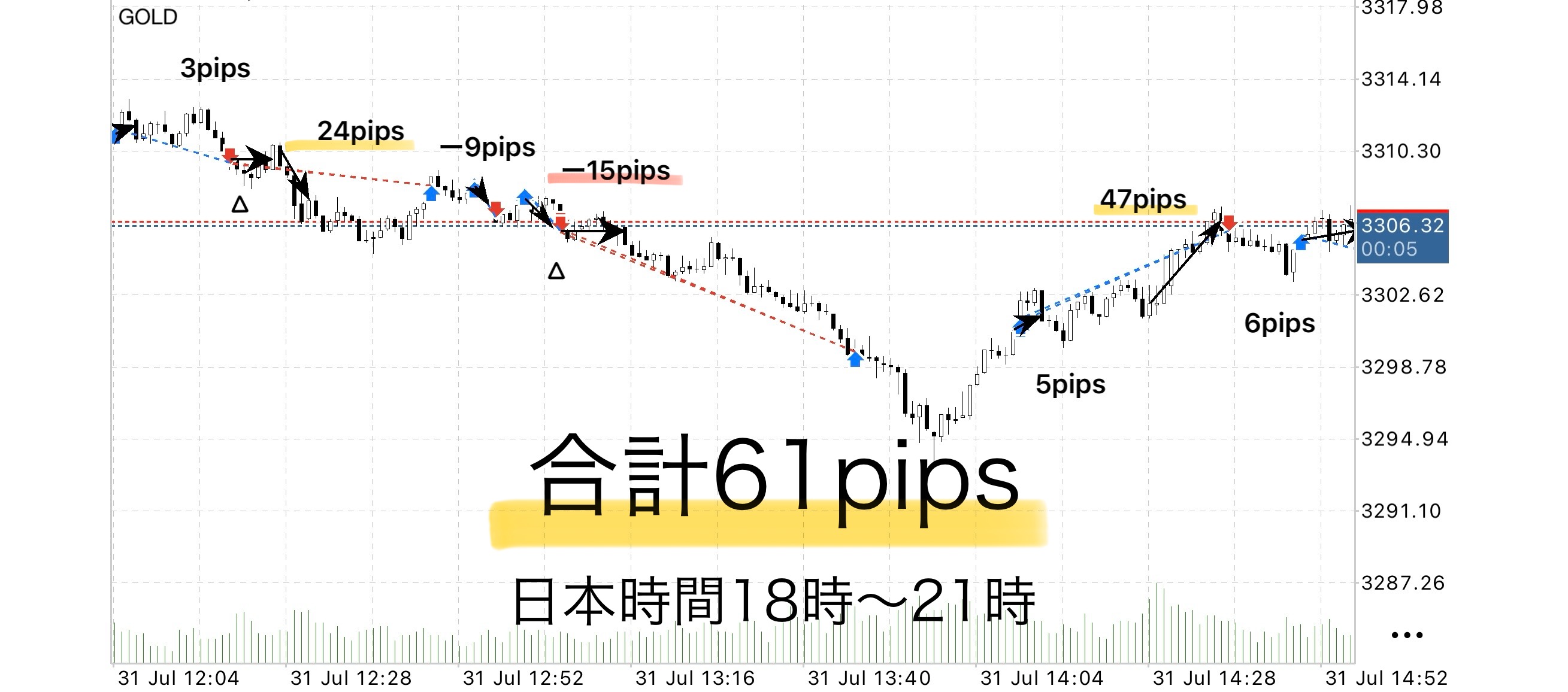 2025年7月31日(木)GOLD1分足|天空ゾーン