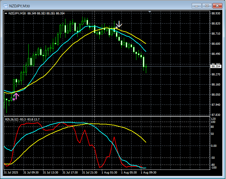 百戦錬磨FX【RCIを極めて勝つ!!】R1R2S2のサイン キウイ円 30分足