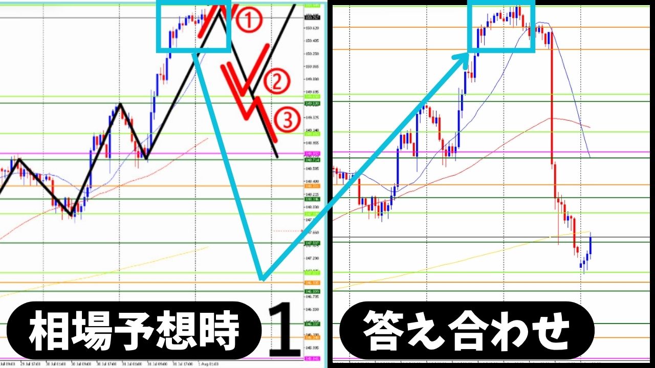 【左側:相場予想時のチャート】 【右側:答え合わせ時のチャート】