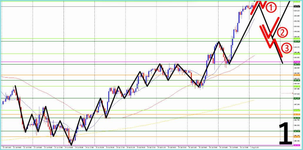 【波動マスターFX】ドル円/答え合わせ ※2025年8月1日金曜日 ノーエントリー。