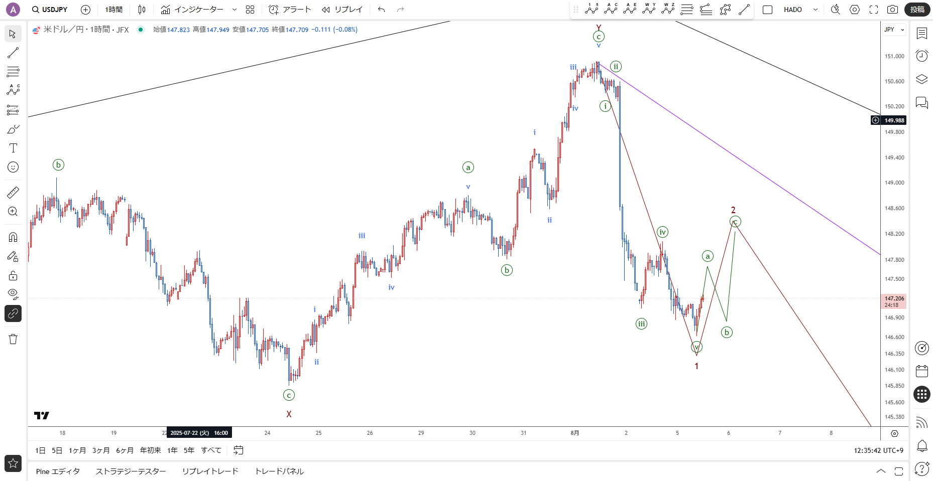 8月5日(火)のイベント&ドル円のエリオット波動分析