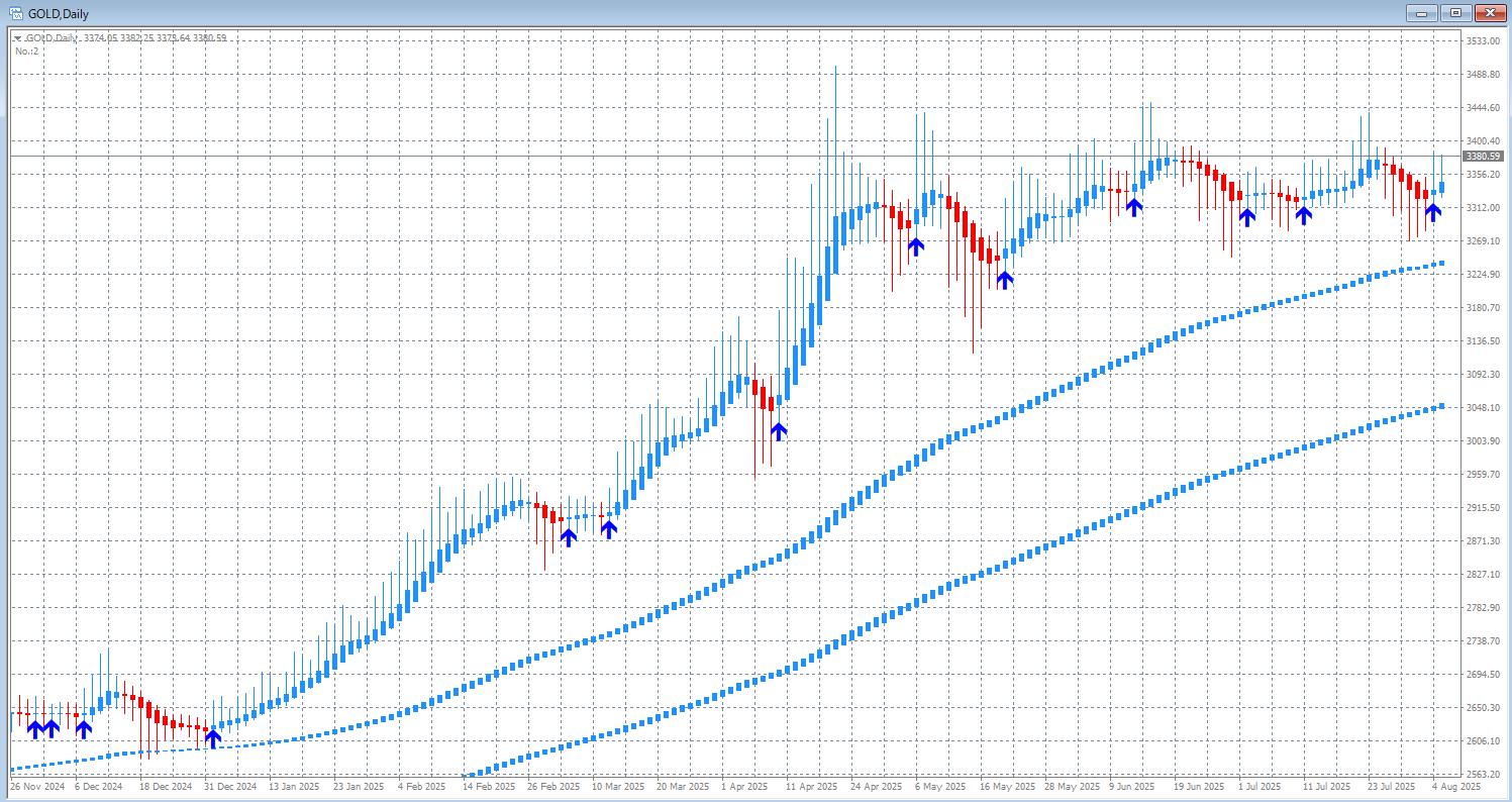 本日はゴールドとドル円のチャートを表示させています。参考にしてください。
