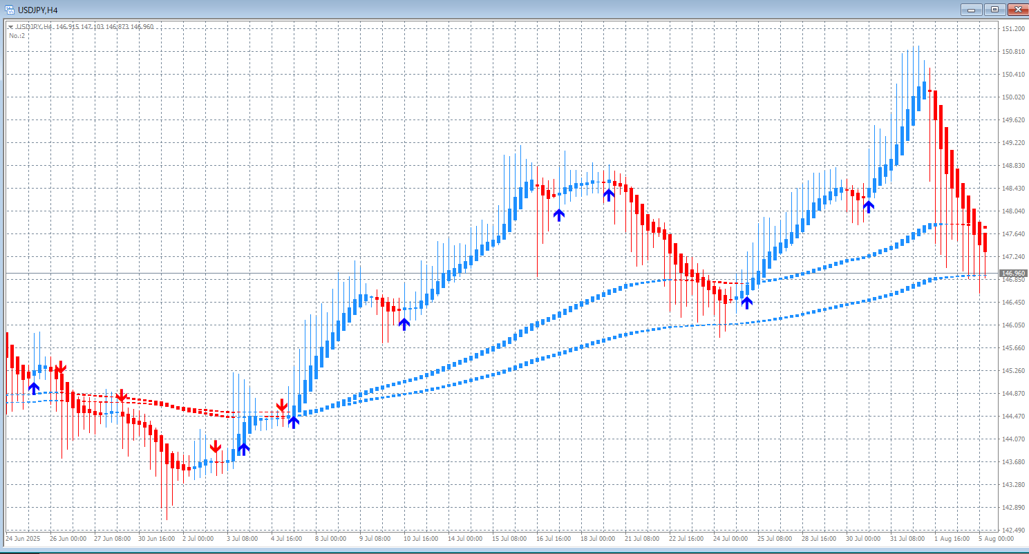 また、トリプルアラートは一般的な平均足よりもスムーズド化されており、さらに使いやすくなっているのが特徴です。