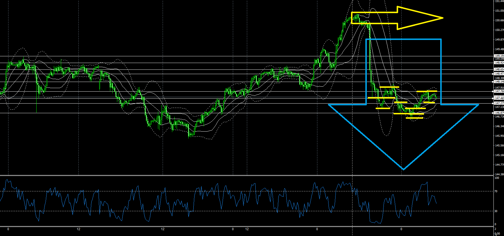 下記チャートは、8月1日からのドル円1時間足チャートです。