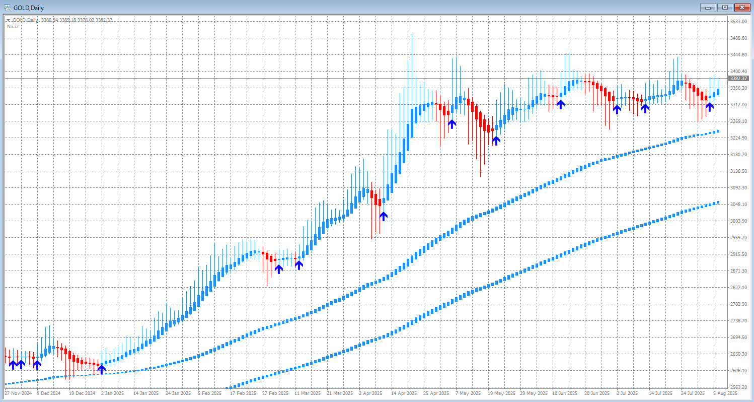 本日はゴールドチャートを表示させています。参考にしてください。