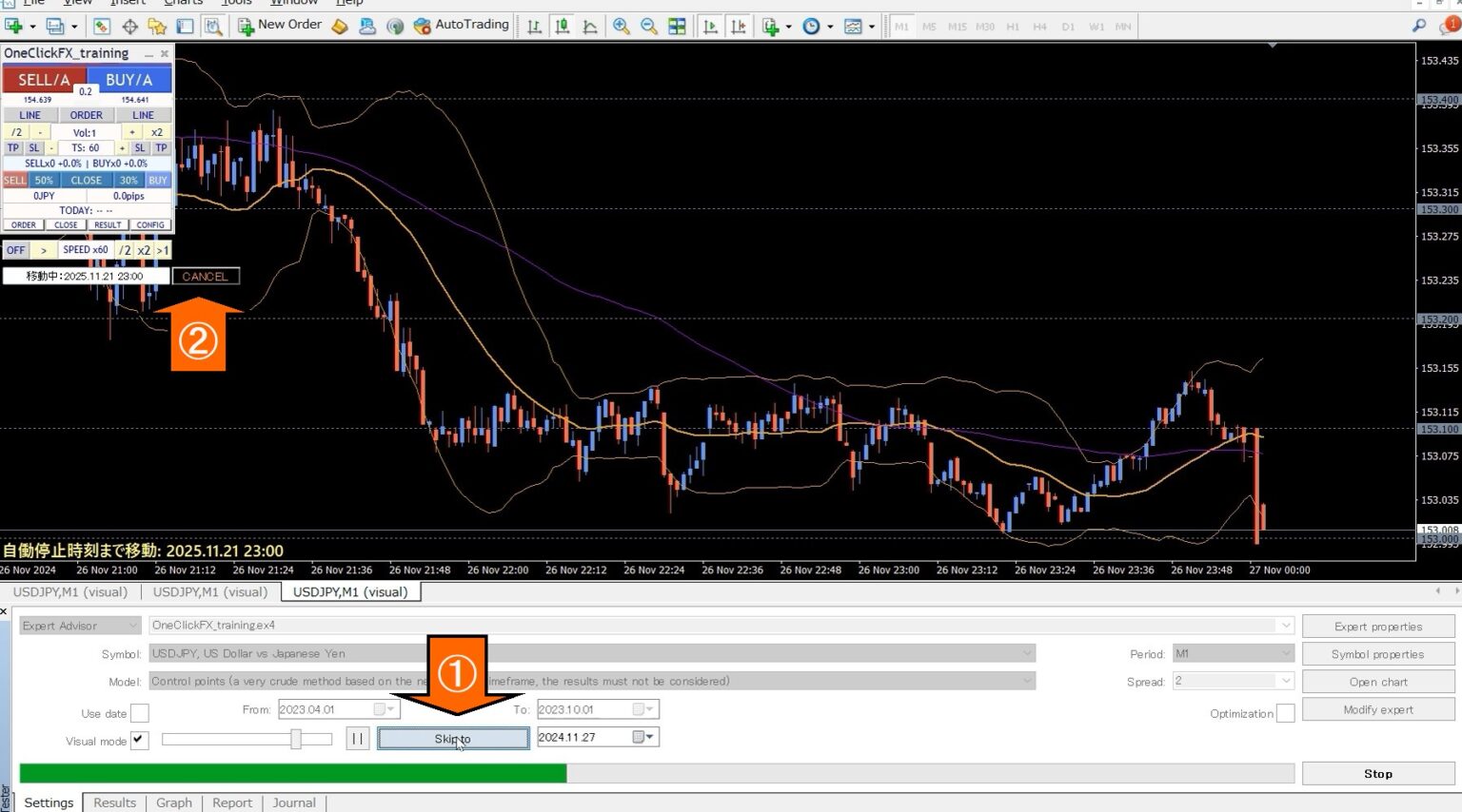 高速スキップを日付指定で行う方法、ワンクリックFXトレーニングMAX