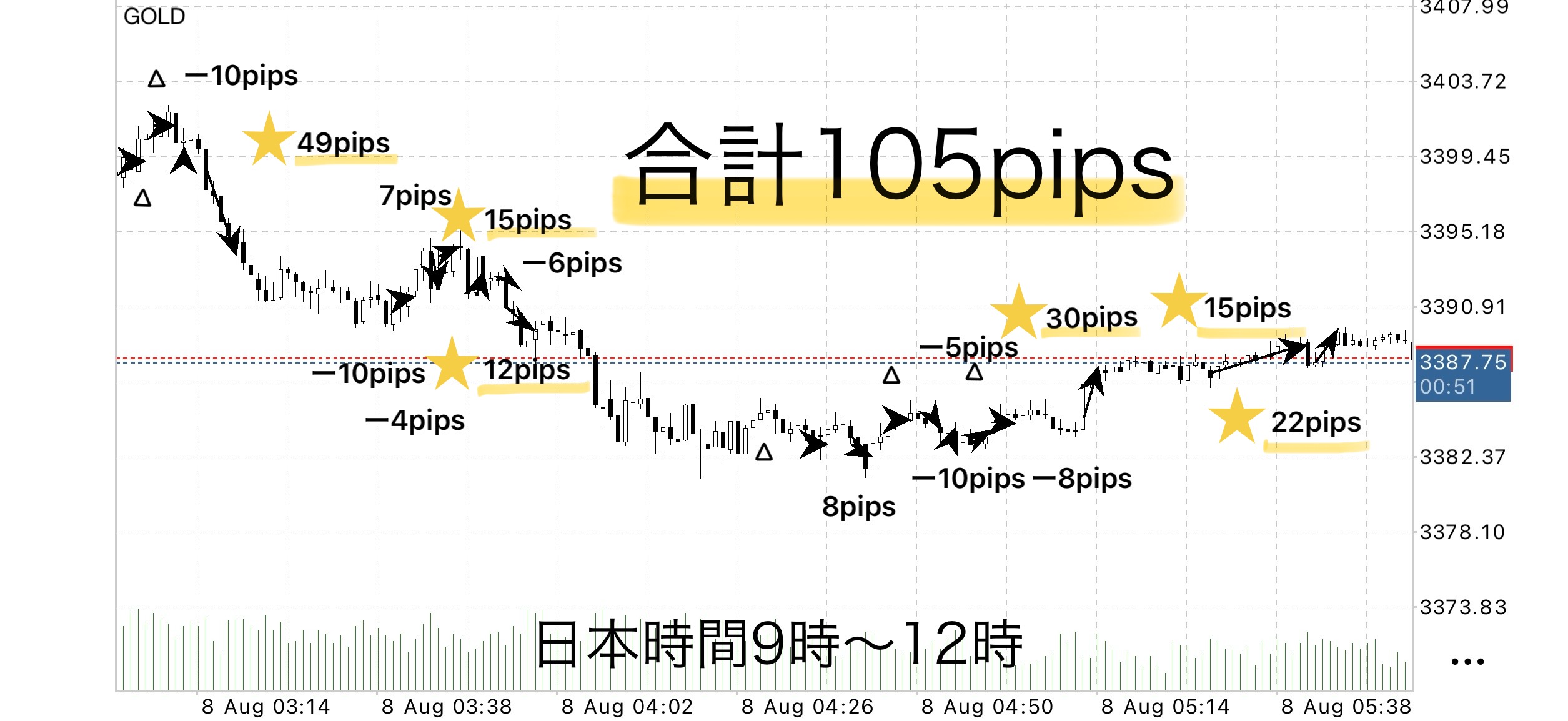 勝率は40%でも、結果的に+105pipsまで伸ばせました。