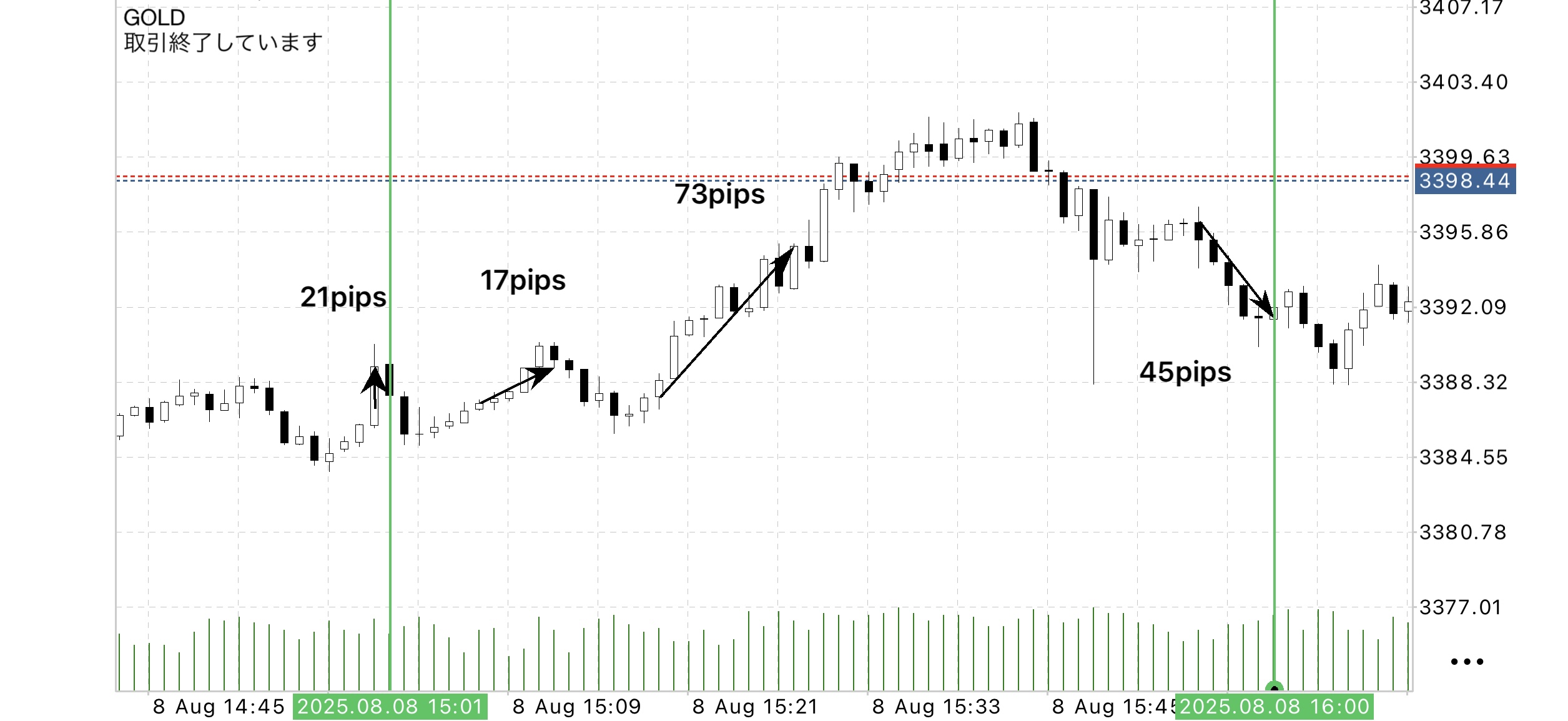 【森羅万象】1分足300pips、5分足400pips越え。スキャル、デイトレ目線で昨日のGOLDで見えた流れ。