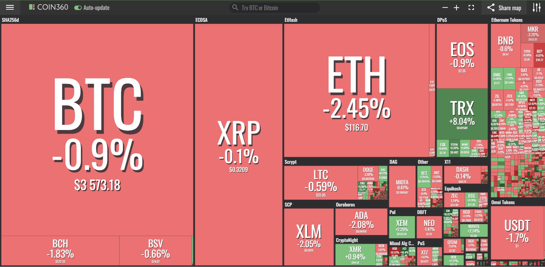 coinmarketcap(コインマーケットキャップ)のサイトから、ドミナンス(各銘柄が仮想通貨全体の時価総額に占めるパーセンテージ)を定点観測していきます。仮想通貨全般が下方向に大きく動き出している相場状況を受け、毎日更新することとし、仮想通貨業界を俯瞰および転換期を早期に発見することを目的とします。