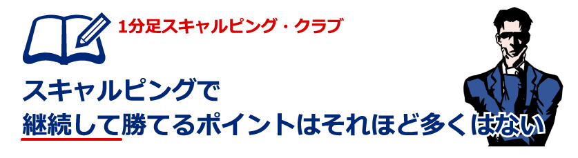 当該「1分足スキャルピング・クラブ」では、この「確信」に基づき、数少ない「スキャルピングで継続して勝てるポイント」をお伝えしています。